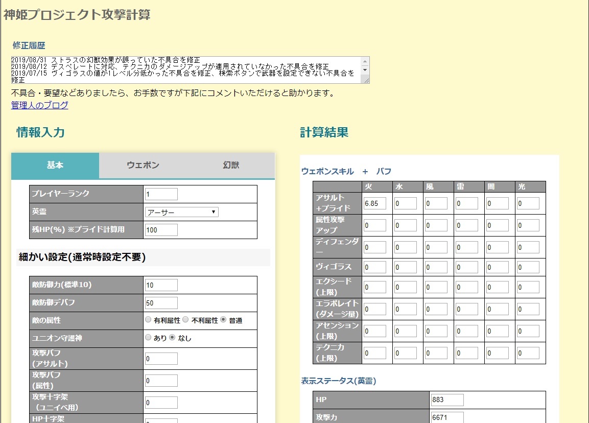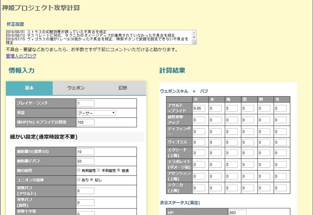 当時やっていたゲームの攻撃力計算機。バックエンドはサーバー解約で消失しました…。