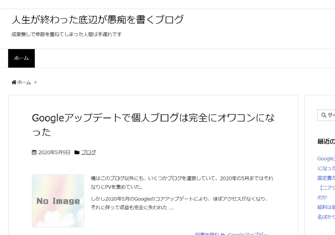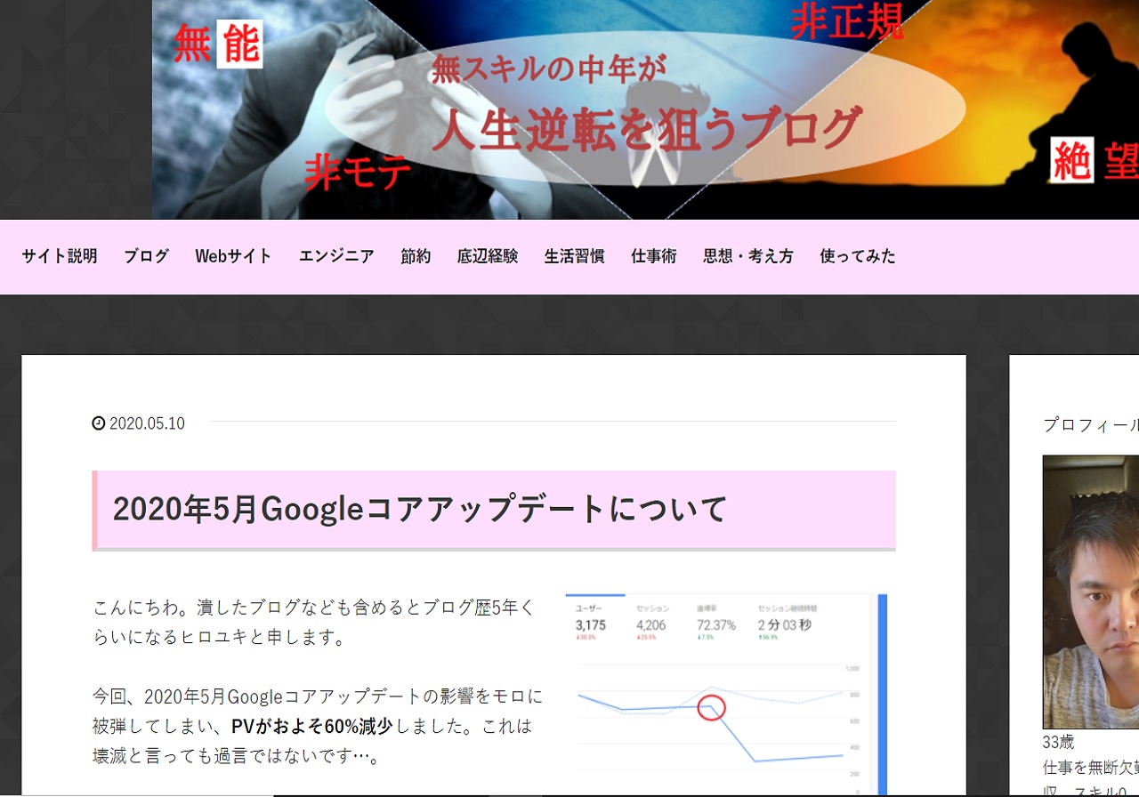 ゲームブログを運営しており、月間5万PVほどあったが、ゲームに興味がなくなり廃止