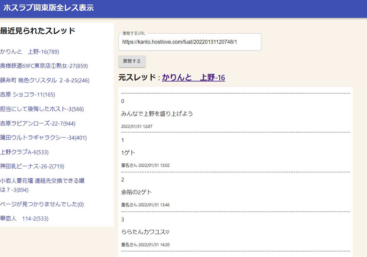 ホストラブのスレッドを展開し全レスを表示できるサイトです。
